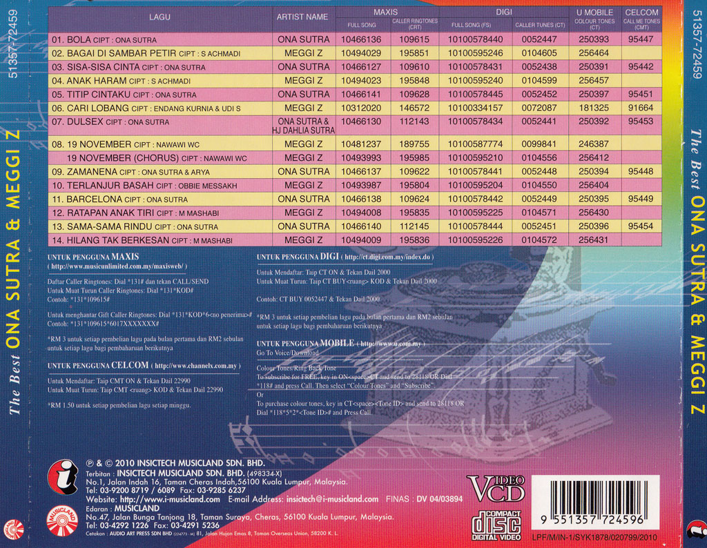 | Β Ona Sutra | Β Sama-Sama Rindu | Β 10466140 | Β 112145 | Β 10100578444 | Β 0052451 | Β 250396 | Β 95454 |