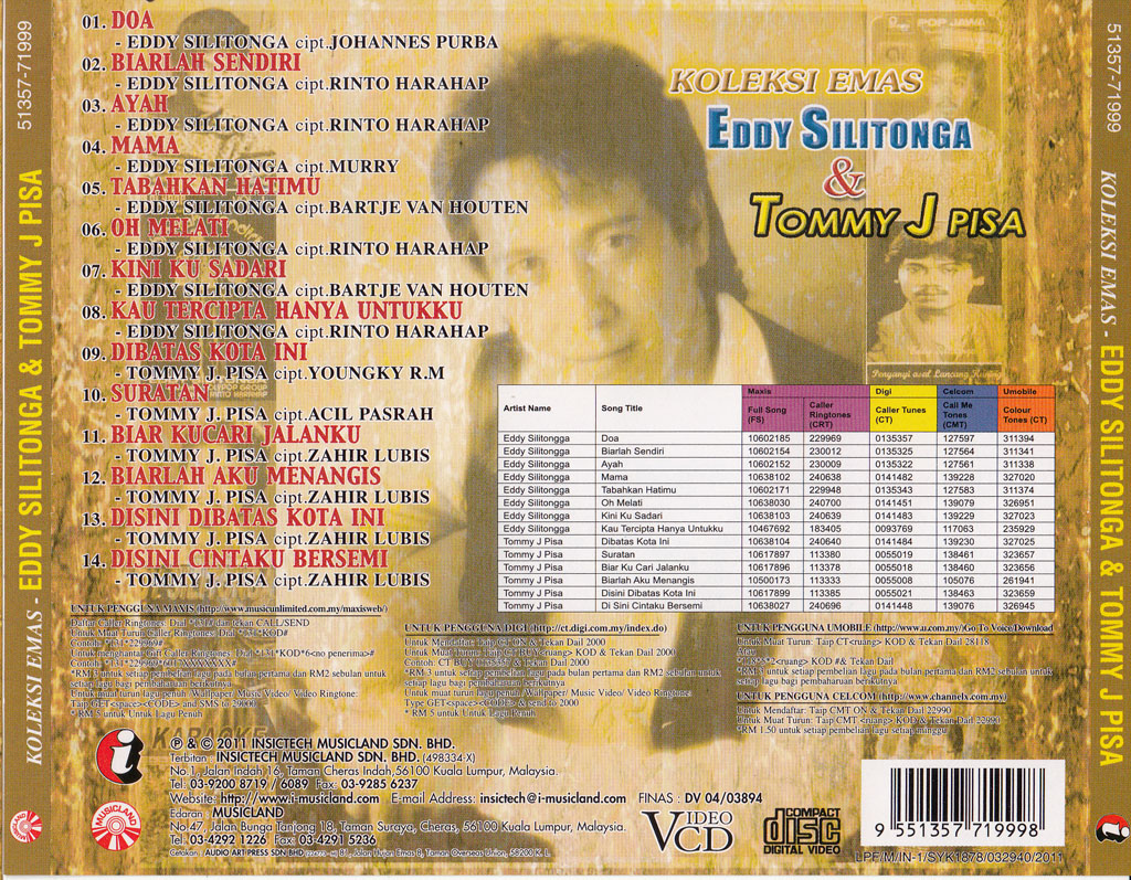 | Eddy Silitonga | Oh Melati | Β 10638030 | Β 240700 | Β 0141451 | Β 139079 | Β 326951 |